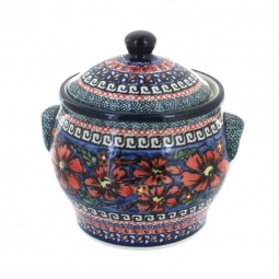 This charming ceramic canister is the perfect blend of beauty and utility, offering a 4.2 cup capacity and standing 6.5 inches high—ideal for storing coffee, sugar, tea, spices, or other kitchen essentials. Each piece is handmade and hand-painted in Poland, making every canister a one-of-a-kind work of art that adds a pop of color and character to your countertop. Crafted from high-fired stoneware and finished with a durable double glaze, it resists chips, scratches, and stains while providing a smooth, easy-to-clean surface.