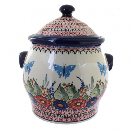 This generously sized cookie jar is the perfect blend of artistry, tradition, and everyday function. Standing 11.25 inches high with an impressive 21.25-cup capacity, it’s ideal for storing cookies, snacks, flour, or other pantry staples while adding a touch of charm to your kitchen counter. Each jar is handmade and hand-painted in Poland by skilled artisans, ensuring that no two are exactly alike. The detailed brushwork and bold, vibrant patterns celebrate centuries of ceramic tradition, making this piece just as decorative as it is practical.