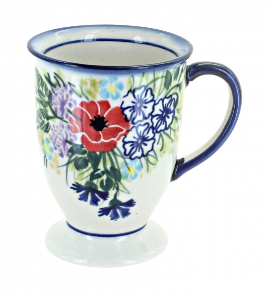 Add a touch of elegance to your daily routine with our small pedestal coffee mug, handmade and hand-painted in Poland by talented artisans. Measuring 4.25 inches tall and holding 8 oz, this charming mug is perfectly sized for coffee, tea, or espresso-based drinks. Its classic pedestal base gives it a graceful silhouette while providing extra stability, making it as practical as it is stylish. Each mug features traditional hand-painted patterns, ensuring no two are exactly alike—every piece is a unique work of functional art.