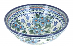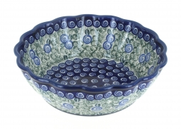This elegant fruit bowl with scalloped detailing is the perfect blend of beauty and function, making it a standout piece for entertaining or everyday use. Handmade and hand-painted by skilled artisans, it showcases the vibrant patterns and timeless artistry of Polish pottery, ensuring that each bowl is truly unique. Measuring 9.25 inches in diameter and 6.75 inches high, it offers a generous capacity that makes it ideal as a centerpiece filled with fresh fruit, a stylish serving bowl for leafy salads, or even for presenting a main entrée at the table.