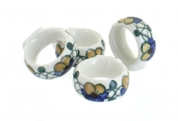 Elevate your table setting with this set of four ceramic napkin rings, each carefully handmade and hand-painted in Poland. Measuring 2 inches in diameter, they are perfectly sized to hold cloth or paper napkins, keeping your table neat while adding a touch of artistry and color. Every piece features unique, vibrant designs that coordinate beautifully with our extensive dinnerware collection, allowing you to create a cohesive look or mix and match patterns for a more eclectic style.