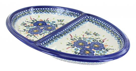 Entertain with ease using our largest 2-section divided dish, a versatile piece designed to make serving both simple and stylish. Measuring 14.75" x 10" x 2" deep, it offers plenty of space for serving two vegetables, appetizers, or side dishes at once, keeping foods neatly separated while presenting them beautifully. Perfect for holiday meals, buffets, or family gatherings, its generous size makes it a true centerpiece on the table. Each dish is handmade and hand-painted in Poland, showcasing vibrant, traditional patterns that make every piece unique and full of charm.