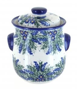 This handcrafted cookie jar is the perfect balance of charm and functionality, making it a delightful addition to any kitchen. Measuring 8.5 inches tall and 7.5 inches wide from handle to handle, it holds up to 8.5 cups—just the right size for storing a batch of your favorite homemade cookies, small baked treats, or even pantry staples like sugar or coffee. Each jar is shaped and painted by hand in Poland, showcasing traditional craftsmanship and artistry in every detail.