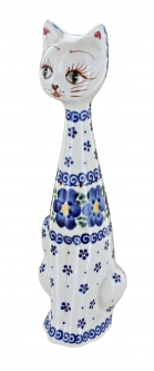 Bring this precious kitten to your mantel, shelf, or display and enjoy the charm it adds to your home. Handmade and hand-painted by skilled artisans, this medium cat figurine showcases the craftsmanship and beauty of traditional Polish pottery. Standing 9.5 inches tall, it is perfectly sized to make a statement while still pairing easily with other decor pieces. The intricate hand-painted patterns are thoughtfully designed to coordinate with your pottery collection, allowing you to create a cohesive and colorful display.