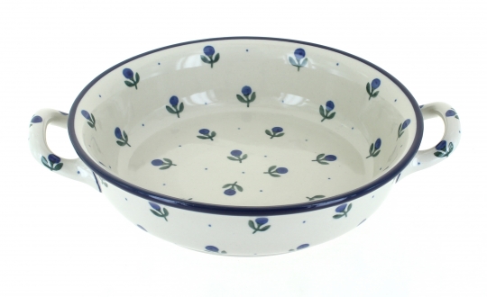 Bring convenience and charm to your kitchen with this small casserole dish with handles, perfectly sized for everyday use. Measuring 8.25" long x 2" high; 6.25" deep. The sturdy side handles make it easy to carry from oven or microwave straight to the table, where its vibrant patterns add a touch of artistry to your presentation. Each dish is handmade and hand-painted in Poland, ensuring that no two pieces are ever alike. Crafted from durable, high-fired stoneware, itÂ’s celebrated for its even heating, excellent heat retention, and easy cleanup, giving you lasting performance you can rely on.