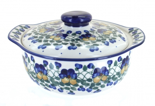 Enjoy both practicality and artistry with this covered baker, a timeless piece designed to elevate everyday cooking and entertaining. Measuring 9" long x 3.5" high. The fitted lid helps retain heat and flavor, keeping meals warm and ready to serve straight from the oven. Each baker is handmade and hand-painted in Poland, decorated with bold, vibrant patterns that make every piece a unique work of functional art. Crafted from durable, high-fired stoneware, it is celebrated for its even baking, excellent heat retention, and easy cleanup, ensuring reliable performance for years of use.