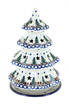 Celebrate the season with the glowing charm of our Polish pottery large Christmas tree luminary. Standing 8 inches tall, this handcrafted piece makes a striking addition to your holiday decor, whether displayed on a mantle, dining table, or entryway. Place a tealight inside, and the detailed cutouts allow the light to shine through, creating the enchanting effect of a twinkling Christmas tree. Each luminary is hand-painted in Boleslaweic, Poland, with the vibrant colors and timeless motifs that make Polish pottery so beloved.