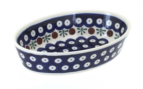 Perfect for individual portions and specialty recipes, this handcrafted Polish pottery extra small oval baker is as charming as it is functional. Measuring 5.25 inches long by 3.25 inches wide and 1.5 inches deep (alternate measurement 6.25 inches long by 4.25 inches wide, 1.5 inches high, and 1.38 inches deep), it’s the ideal size for custards, crème brûlée, dips, or single-serving casseroles. Each baker is shaped and painted by hand, making every piece unique while showcasing the artistry and tradition that define Polish pottery.