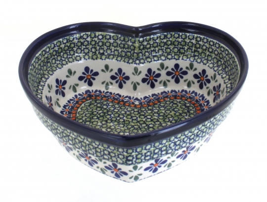 A beautiful blend of function and sentiment, our large heart bowl is both a thoughtful gift and a versatile serving piece. Measuring 8.5 inches by 8.5 inches and 2.5 inches deep, it is generously sized for presenting salads, fruits, or special desserts at a Valentine’s celebration, anniversary dinner, or family gathering. Handcrafted and hand-painted in Boleslaweic, Poland, each bowl is adorned with vibrant colors and timeless patterns, ensuring that no two pieces are ever exactly alike.