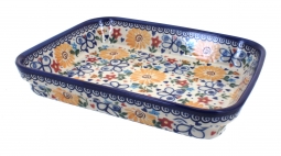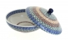 This versatile covered bowl is a beautiful blend of functionality and artistry, making it an essential piece for both serving and display. Measuring 6.5 inches in diameter and 2 inches deep, it’s the perfect size for side dishes like cranberry sauce, relishes, or dips, and can also be used as an individual covered soup dish. Beyond the table, it doubles as a charming container for trinkets, jewelry, or decorative accents. Each bowl is shaped and painted by hand, ensuring every piece is unique and showcasing the vibrant colors and timeless designs that define Polish pottery.