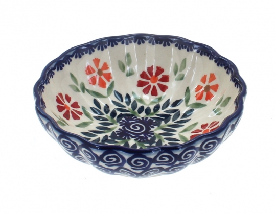 From Manufaktura, this small scallop bowl is a sweet and versatile piece that’s perfect for everyday use or entertaining. Measuring 4.5 inches in diameter and 1.5 inches deep, it’s just the right size for a scoop of ice cream, a handful of nuts, candies, or even dipping sauces and condiments. The gently scalloped edge adds a touch of elegance and charm, elevating even the simplest treats into a special presentation. Handmade and hand-painted in Poland, each bowl is decorated with vibrant colors and intricate patterns that reflect generations of craftsmanship, making every piece one-of-a-kind.
