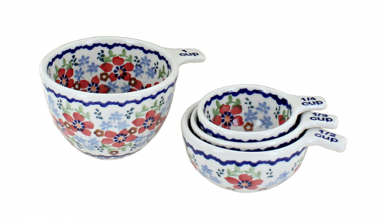Bring artistry and function together with this set of four nested measuring bowls, designed in the essential sizes every cook needs: ¼ cup, ? cup, ½ cup, and 1 cup. Each bowl is handmade and hand-painted in Poland, showcasing vibrant patterns and timeless craftsmanship that elevate everyday cooking and baking. More than just practical tools, these bowls add charm and personality to your kitchen, making even the simplest recipes feel special. Their nested design allows for compact storage, keeping your space organized while ensuring you always have the right size within reach.