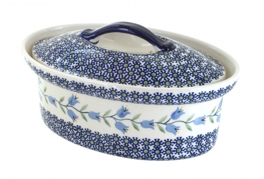 Compact, versatile, and full of charm, this small oval covered baker is the perfect size for everyday favorites and entertaining alike. Measuring 8.75" x 5.75" and 3.5" deep with a 4-cup capacity, itÂ’s ideal for baking small casseroles, warming dips, or serving side dishes in just the right portion. The fitted lid helps retain heat and flavor, while the oval shape offers an elegant presentation straight from oven to table. Each baker is handmade and hand-painted in Poland, decorated with vibrant, traditional patterns that make every piece a one-of-a-kind work of art.